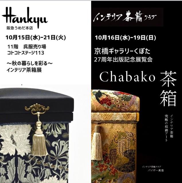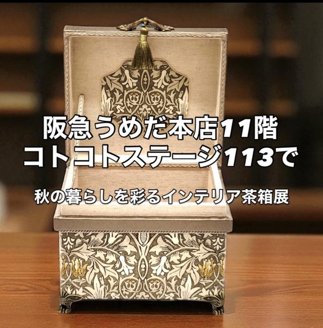 Home › お知らせ › インテリア茶箱クラブ 阪急うめだ本店11階 2025-10-12 インテリア茶箱クラブ 阪急うめだ本店11階 ~秋の暮らしを彩る~インテリア茶箱展 ◎10月15日(水)〜10月21日(火)◎11F きもの売場 コトコトステージ113 関連記事 2025年11月レッスン日程のご案内 リーガロイヤル、インテリア茶箱展示会10月14日(日)まで 今年も秋は大丸神戸店へ Nantucket Basket 芦屋宮塚教室5月のレッスン日 高島屋 大阪 心豊かに暮らすインテリア茶箱の世界 2025年11月レッスン日程のご案内